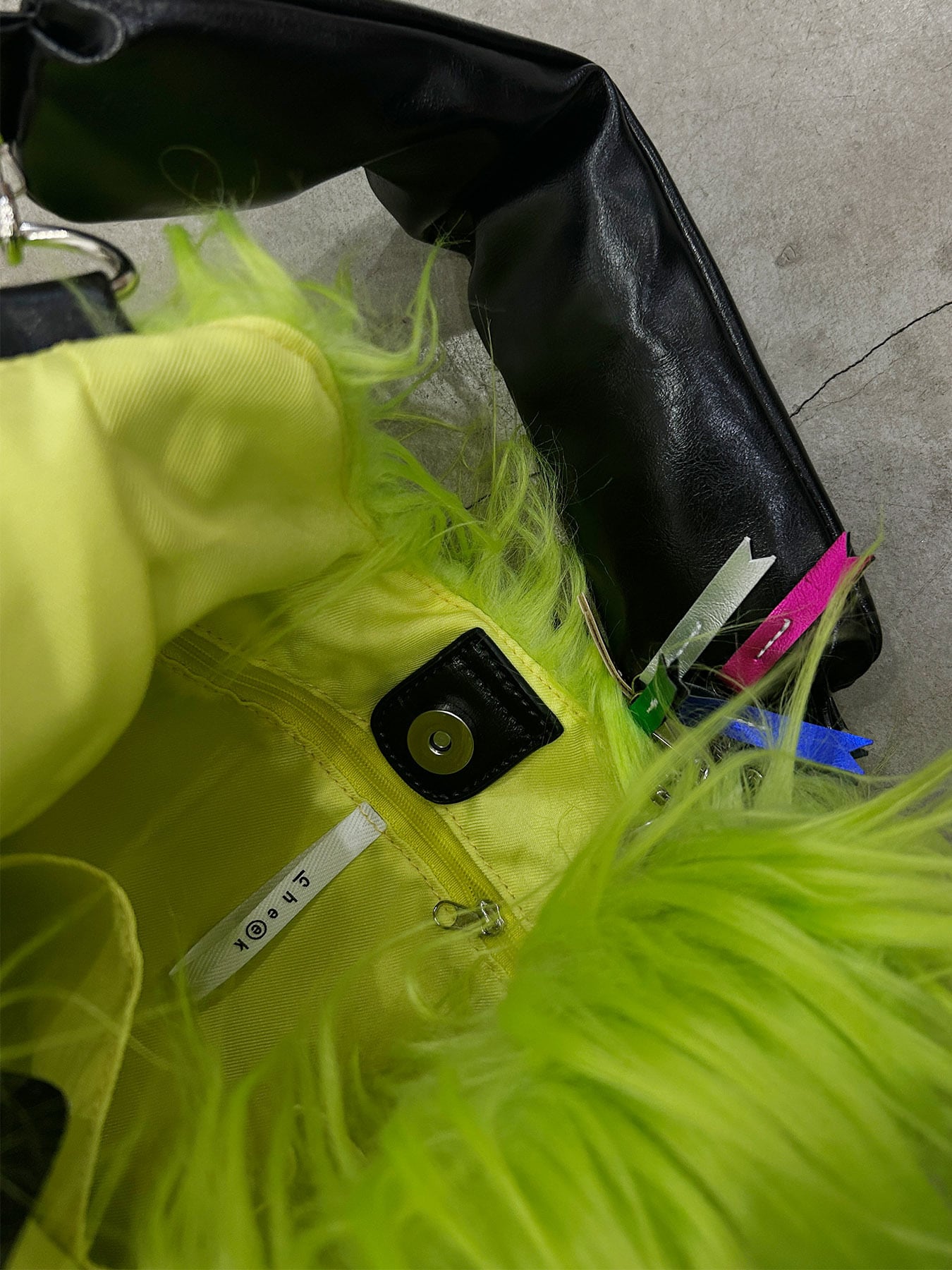 視線を奪うヴィヴィッドカラーのファーと、ボリューム感たっぷりのシルエット。