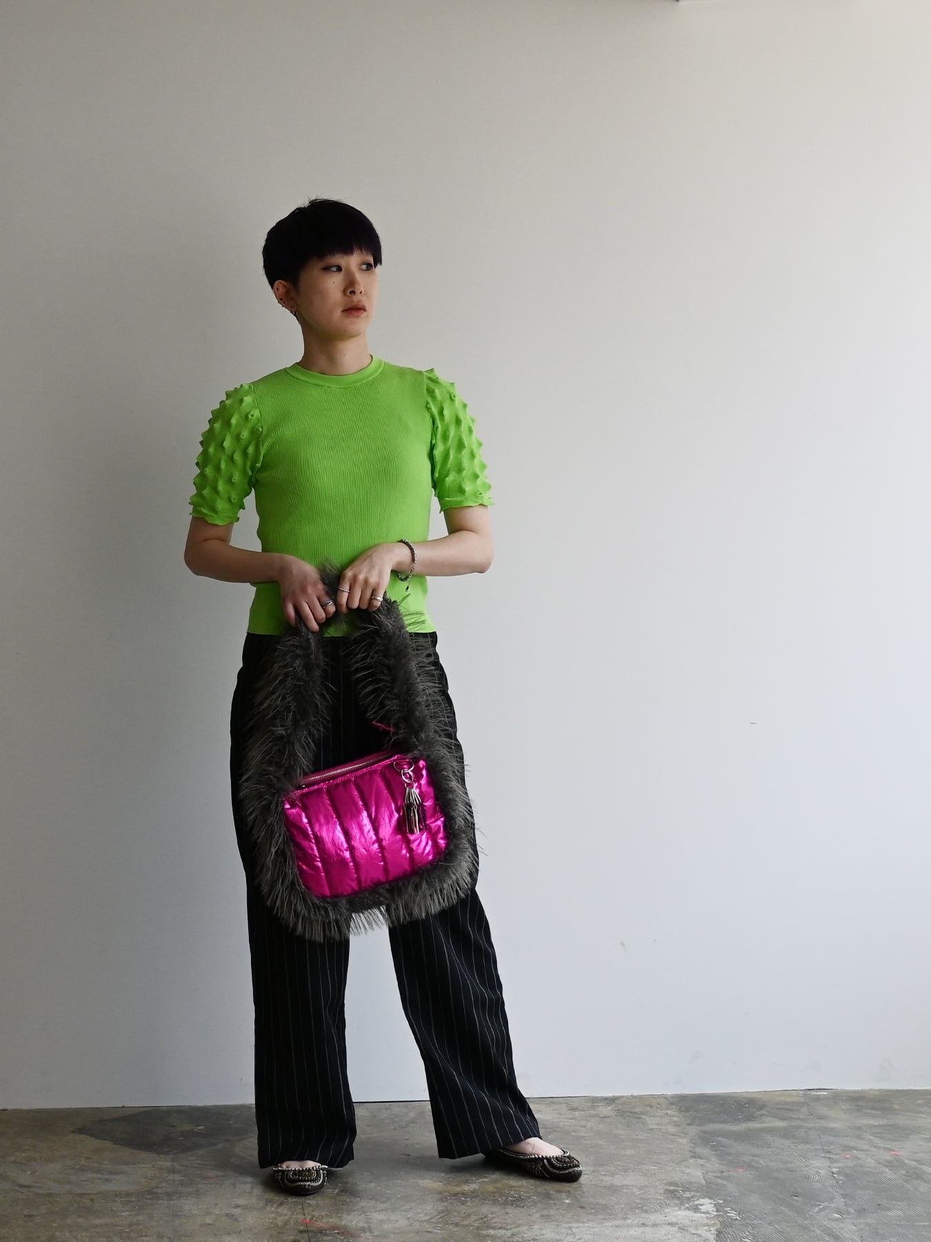 視線を奪うメタリックカラーのボディとボリュームたっぷりのモンスターファー。