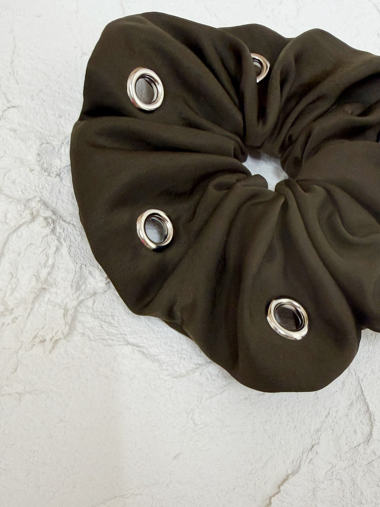 散りばめられたアイレットのディテールが、シンプルなシュシュのポイントとなりトレンドスタイルの完成!
