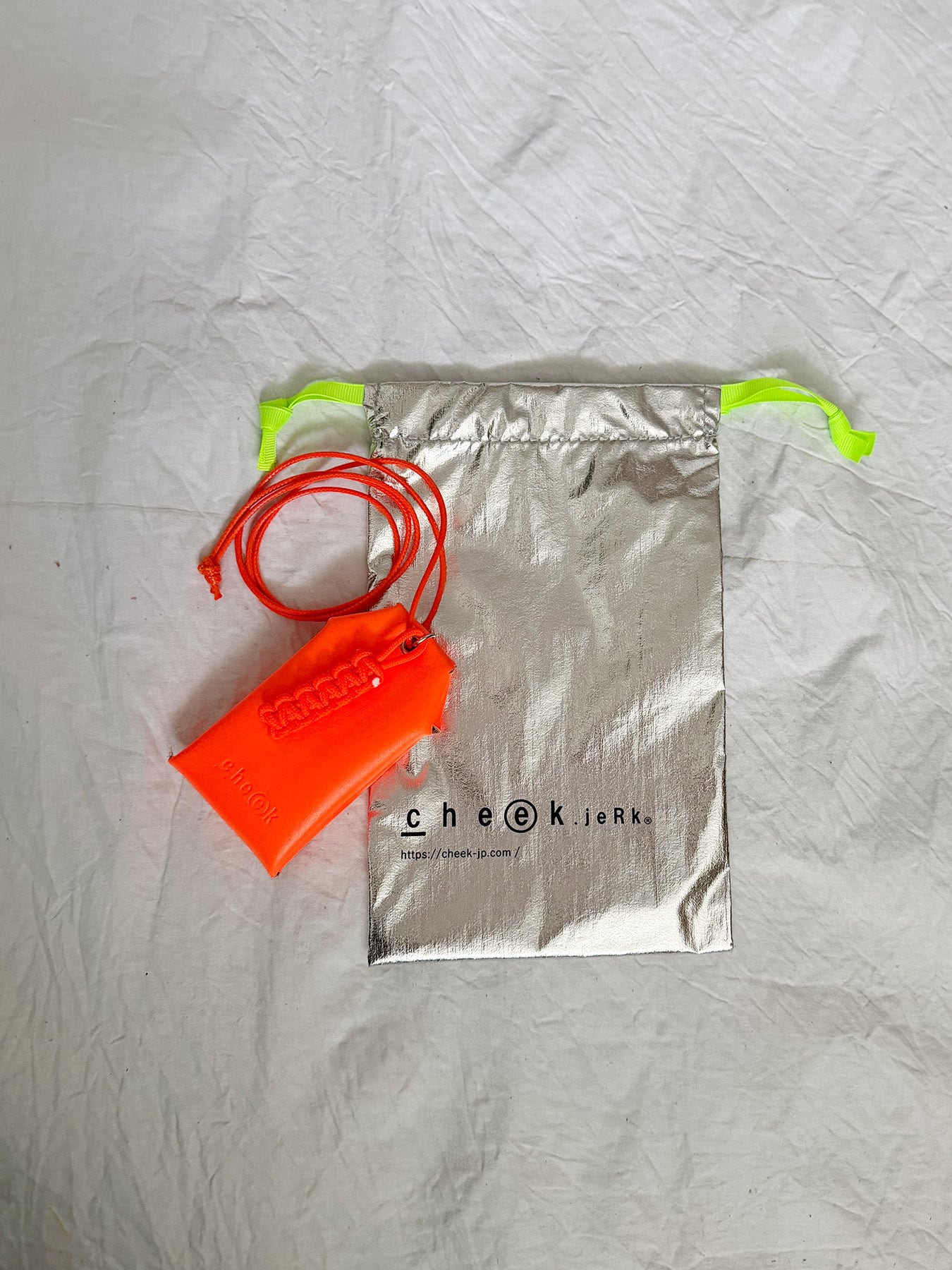 ネオンカラーが目を惹く、お守りデザインのネックレス。