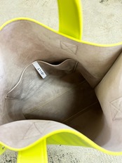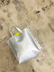 フェイクレザーにカラー生地を貼り合わせた軽量トート。