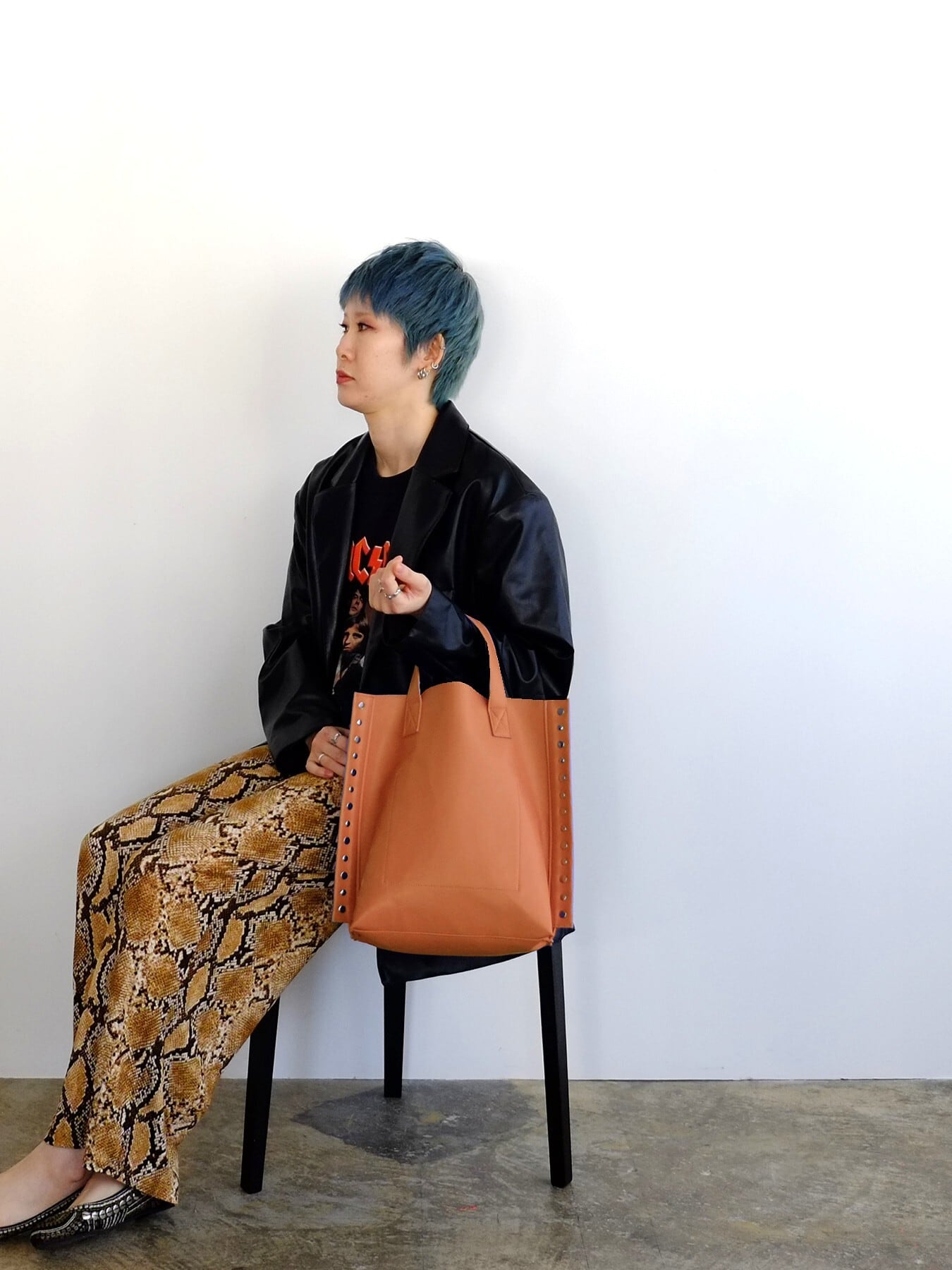サイドにはちょっぴりハードなリベットをライン打ちにしてポイントに!