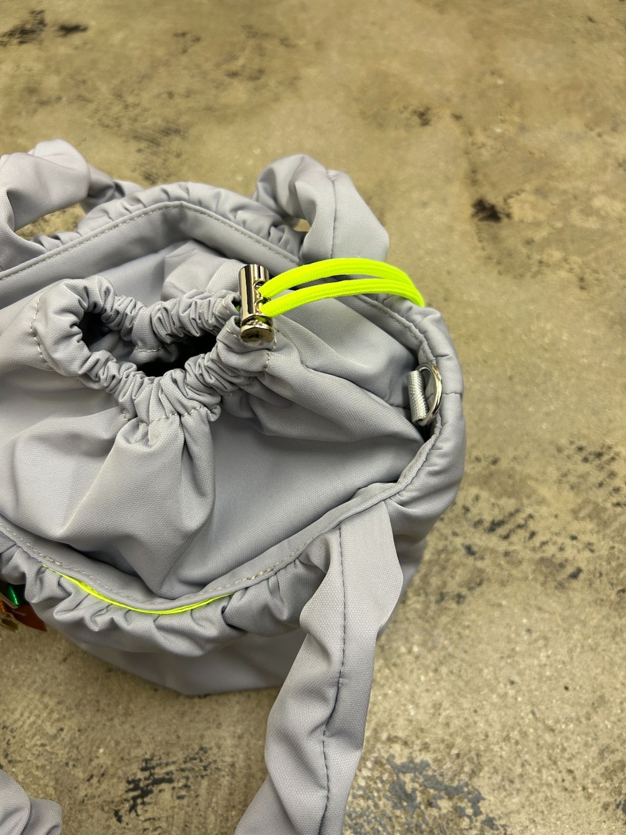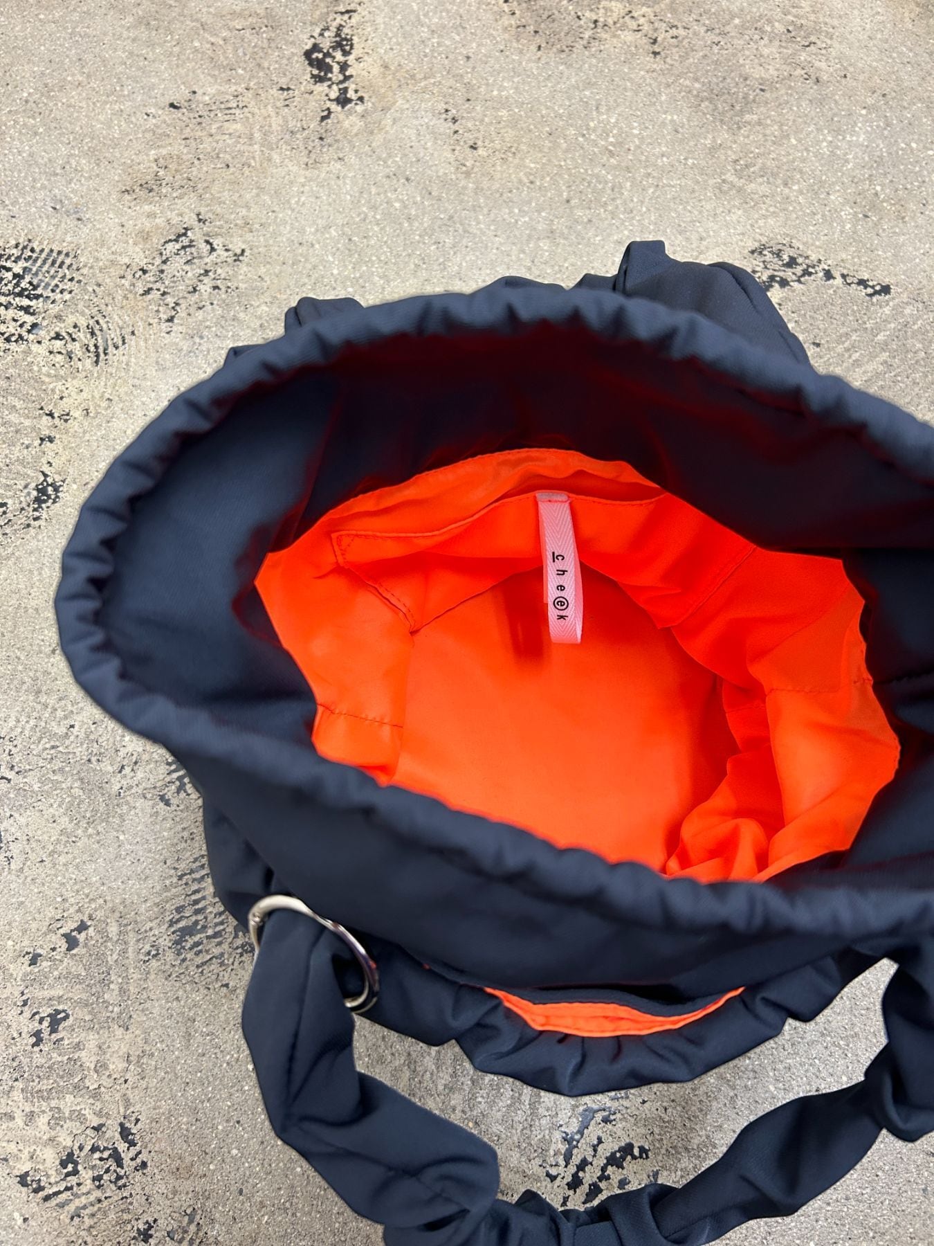 口元はカラーコードで開閉できる巾着トート仕様。