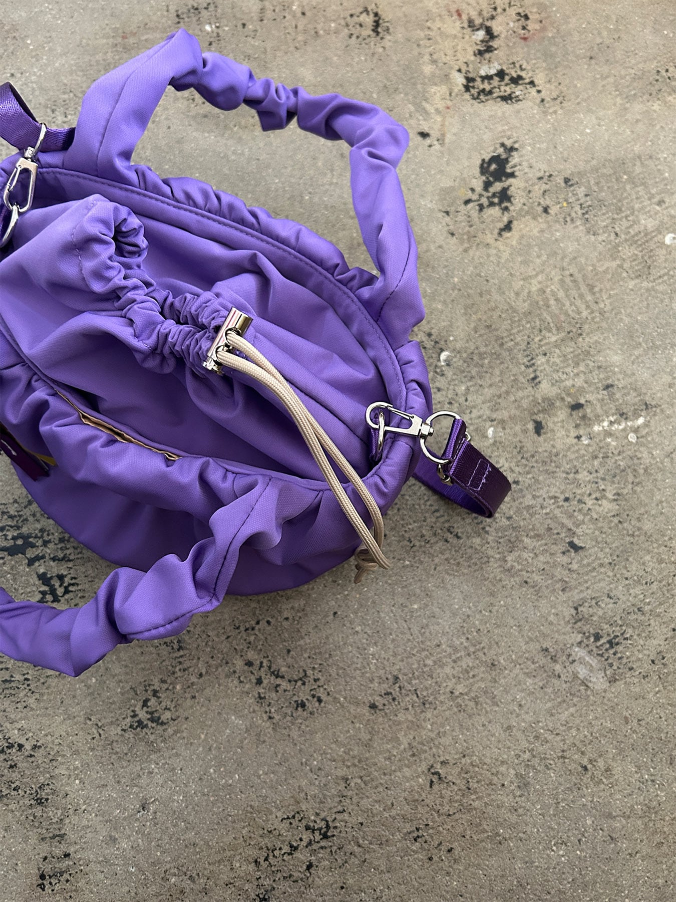 ぽっこりしたギャザー巾着2WAYトート。